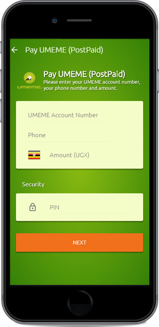 PAY UMEME (Postpaid)If you haven’t done so already, Get the Easypay App and Register for a free account. To pay all other bills To get started tap the bills icon in the home screen to reveal a right panel containing all your bills. Tap the Umeme icon to proceed.
